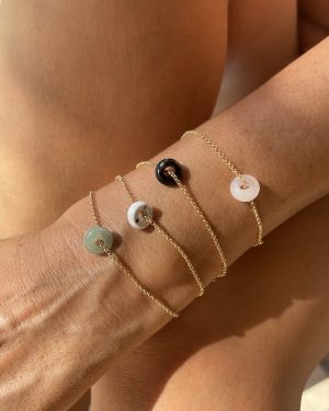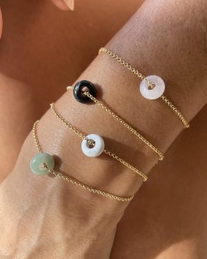 Este hermosa brazalete chapado en oro está creado con Selenita natural. Adorna tu muñeca con luz y protección de tu Guardian de Selenita.